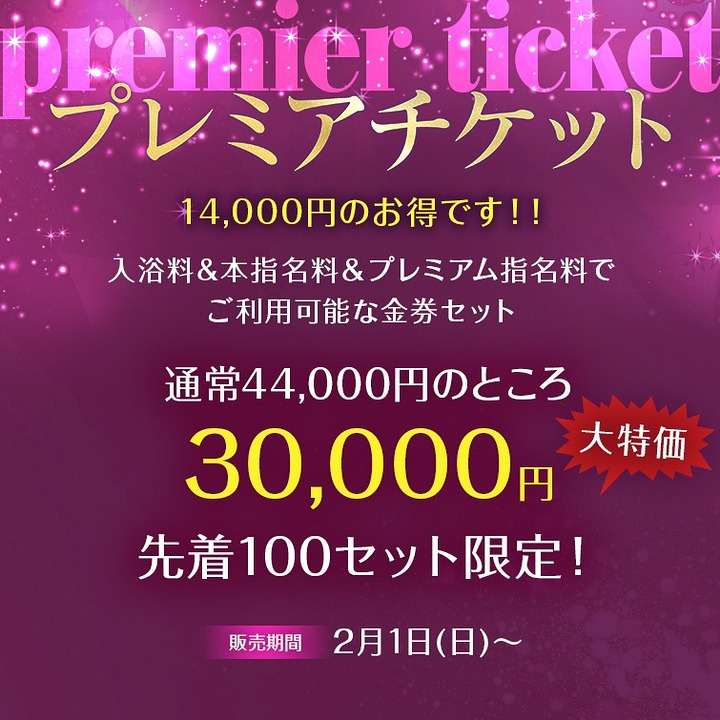 入浴料&本指名料&プレミアム指名料でご利用可能な金券セットになります。