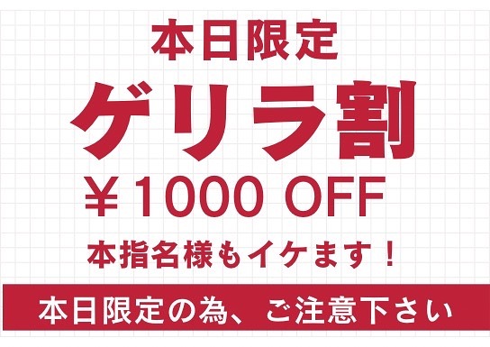 『ゲリラ割引見ました』とお伝え下さい!!!